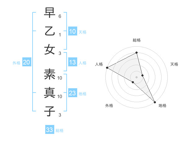 早乙女 素真子さんの天格は10画の1点!