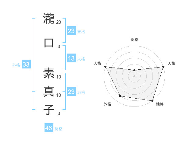 瀧口 素真子さんを姓名の画数から五運を鑑定