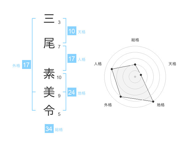 三尾 素美令さんを姓名の画数から五運を鑑定