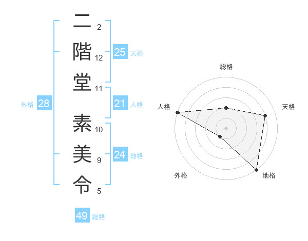 二階堂 素美令さんの天格は25画の4点!