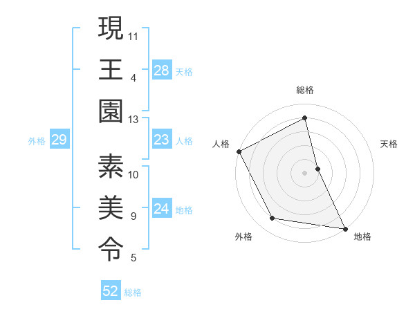 現王園 素美令さんを姓名の画数から五運を鑑定