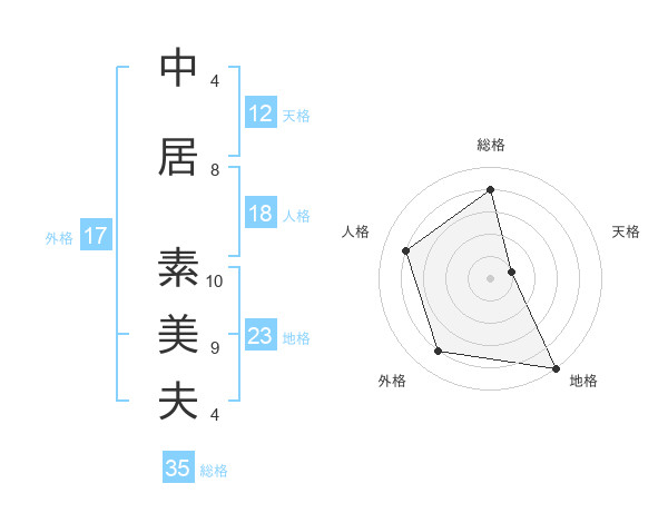 中居 素美夫さんを姓名の画数から五運を鑑定