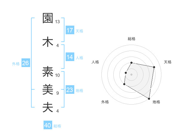 園木 素美夫さんの総格は40画の2点!