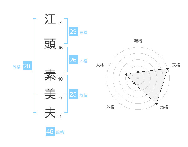 江頭 素美夫さんの天格は23画の5点!