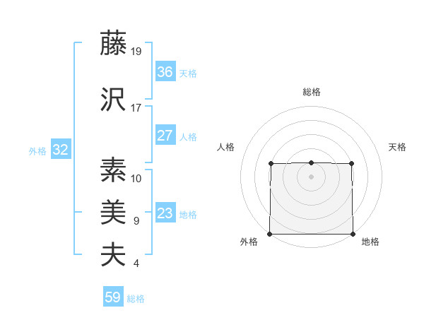 藤沢 素美夫さんの外格は32画の5点!