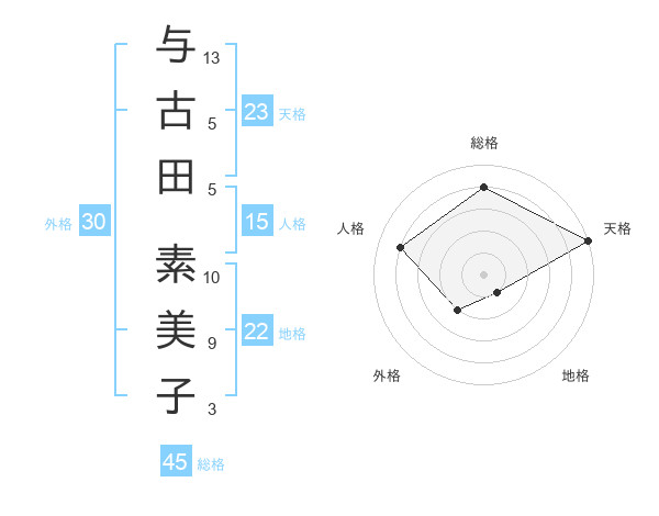 与古田 素美子さんの天格は23画の5点!