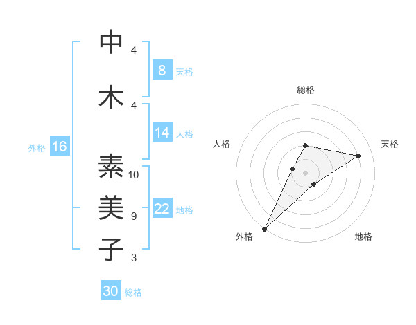 中木 素美子さんの天格は8画の4点!