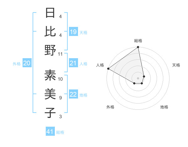 日比野 素美子さんを姓名の画数から五運を鑑定