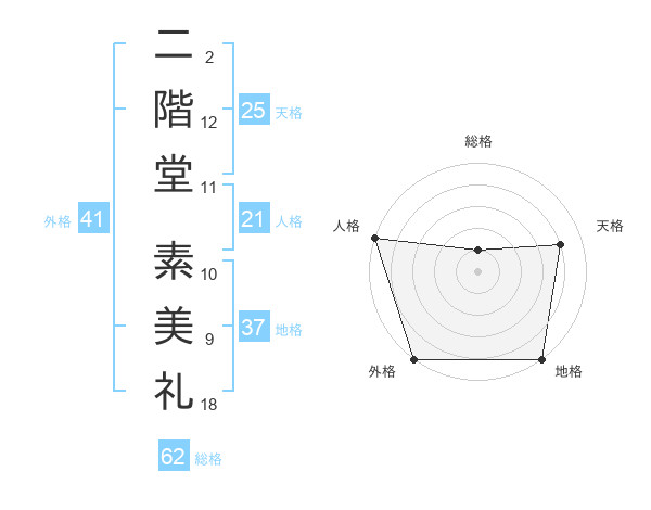 二階堂 素美礼さんの天格は25画の4点!