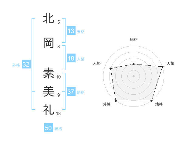 北岡 素美礼さんを姓名の画数から五運を鑑定