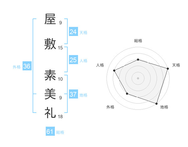 屋敷 素美礼さんの天格は24画の5点!