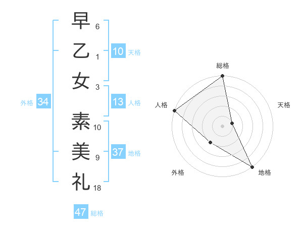 早乙女 素美礼さんを姓名の画数から五運を鑑定