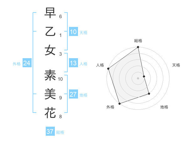 早乙女 素美花さんの総格は37画の5点!