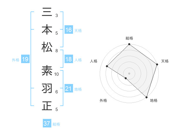 三本松 素羽正さんを姓名の画数から五運を鑑定