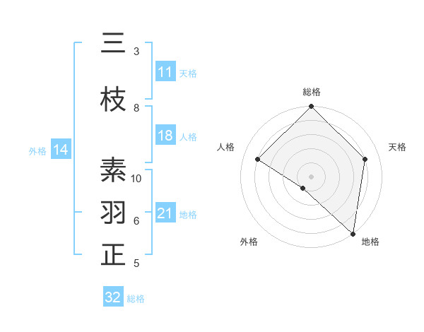 三枝 素羽正さんを姓名の画数から五運を鑑定