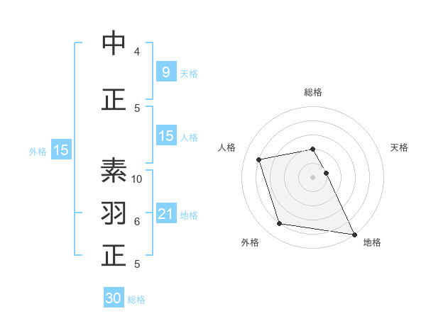 中正 素羽正さんの総格は30画の2点!