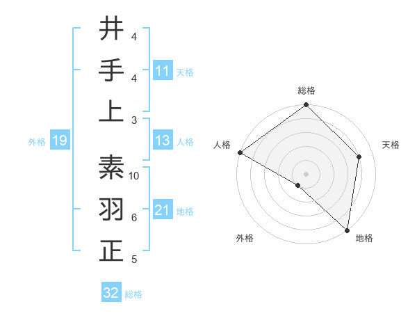 井手上 素羽正さんを姓名の画数から五運を鑑定