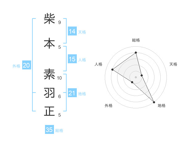 柴本 素羽正さんの総格は35画の4点!