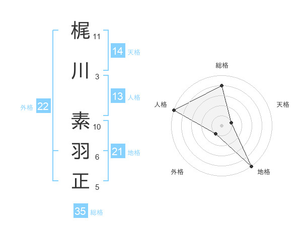 梶川 素羽正さんを姓名の画数から五運を鑑定