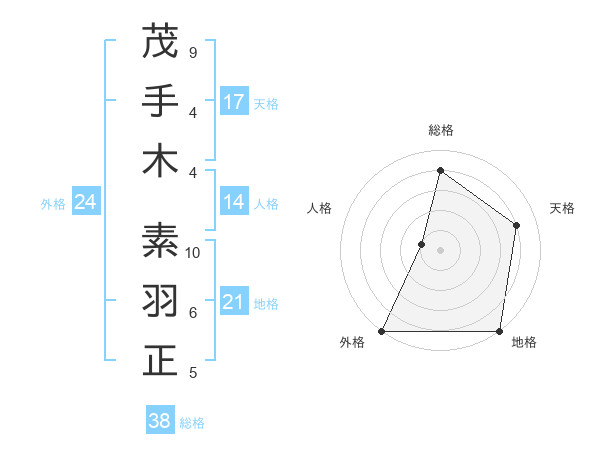 茂手木 素羽正さんを姓名の画数から五運を鑑定