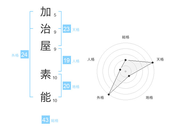 加治屋 素能さんを姓名の画数から五運を鑑定