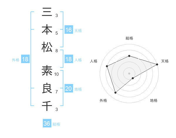 三本松 素良千さんを姓名の画数から五運を鑑定