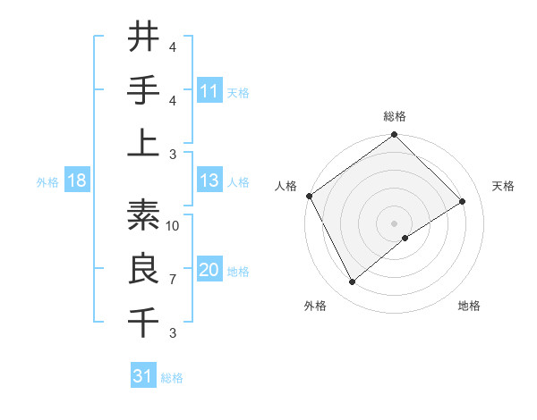 井手上 素良千さんを姓名の画数から五運を鑑定