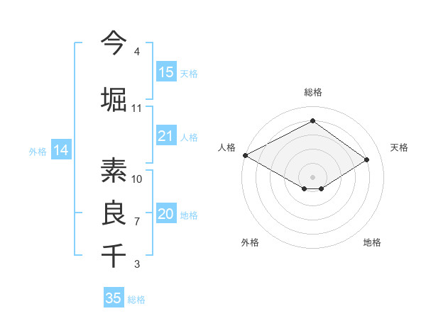 今堀 素良千さんの総格は35画の4点!