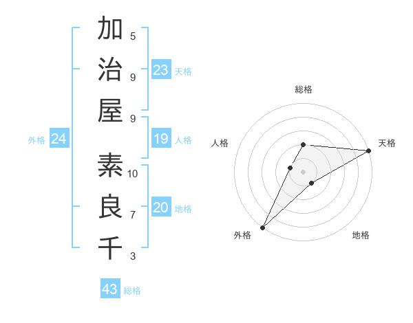 加治屋 素良千さんを姓名の画数から五運を鑑定