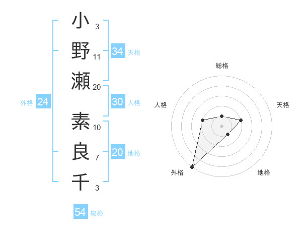 小野瀬 素良千さんを姓名の画数から五運を鑑定