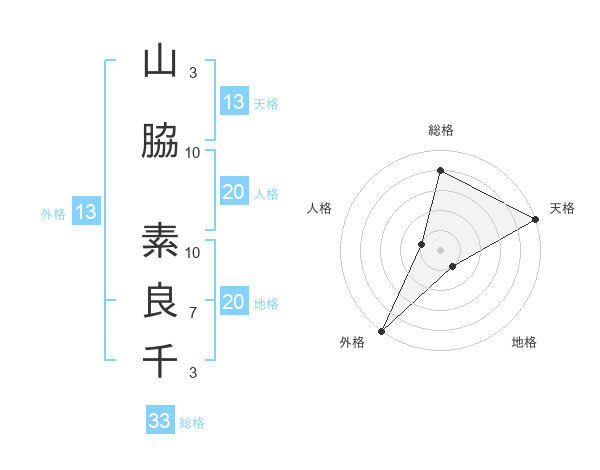 山脇 素良千さんを姓名の画数から五運を鑑定