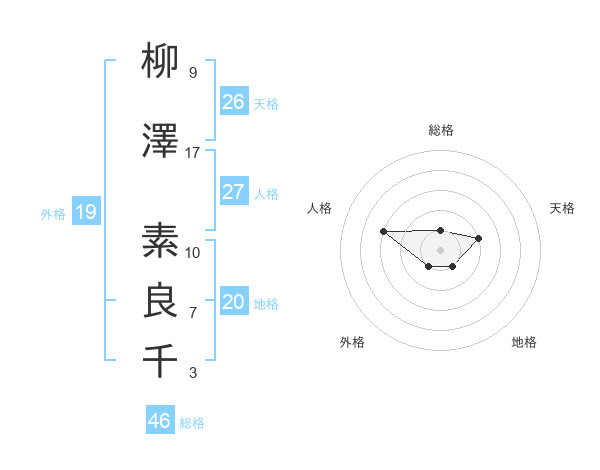 柳澤 素良千さんの天格は26画の2点!