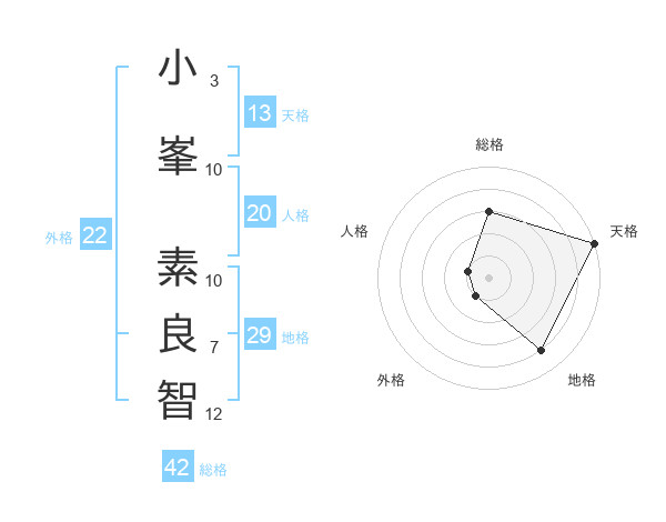 小峯 素良智さんを姓名の画数から五運を鑑定