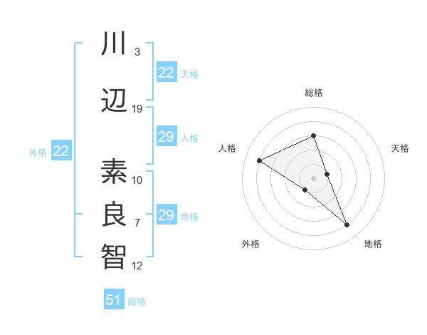 川辺 素良智さんを姓名の画数から五運を鑑定