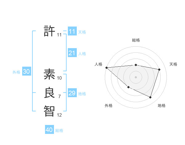 許 素良智さんの人格は21画の5点!