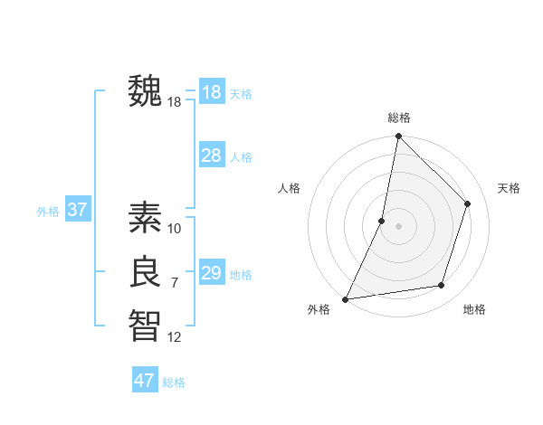 魏 素良智さんの総格は47画の5点!