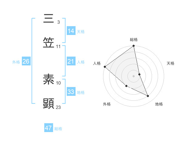三笠 素顕さんを姓名の画数から五運を鑑定