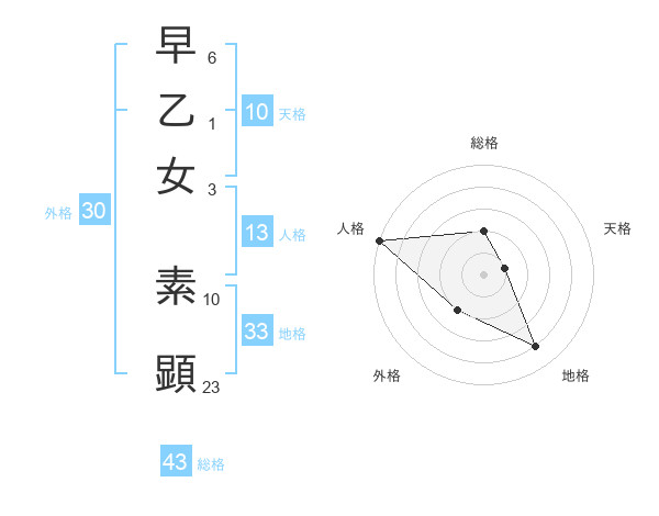 早乙女 素顕さんの総格は43画の2点!