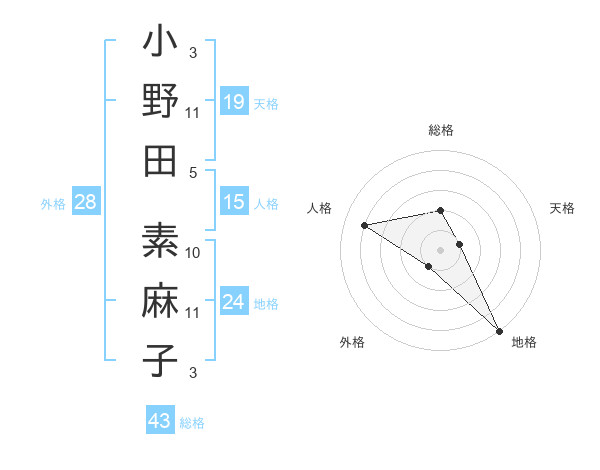 小野田 素麻子さんを姓名の画数から五運を鑑定