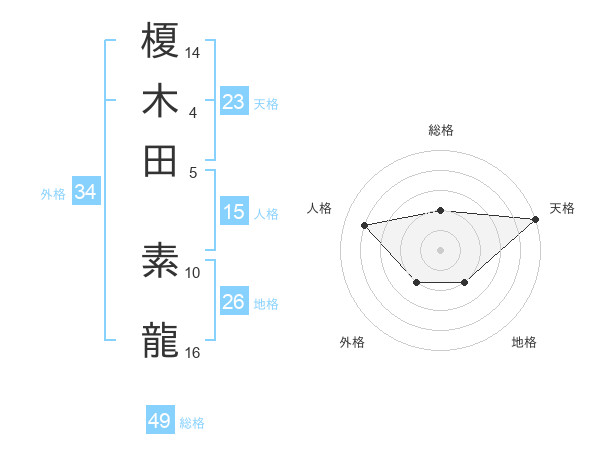 榎木田 素龍さんの天格は23画の5点!