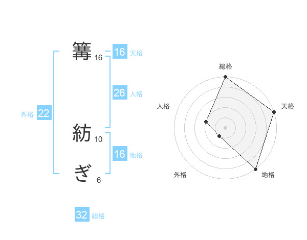 篝 紡ぎさんの天格は16画の5点!