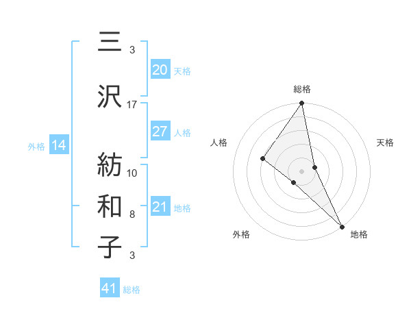 三沢 紡和子さんの天格は20画の1点!