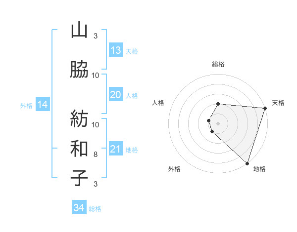 山脇 紡和子さんの天格は13画の5点!