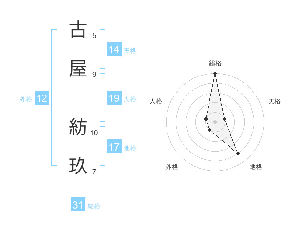 古屋 紡玖さんを姓名の画数から五運を鑑定