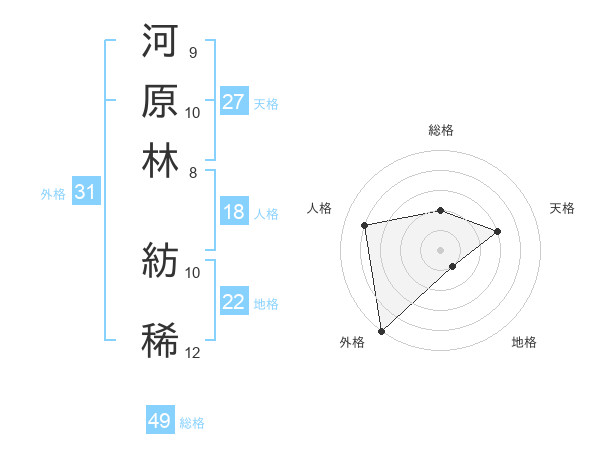 河原林 紡稀さんを姓名の画数から五運を鑑定