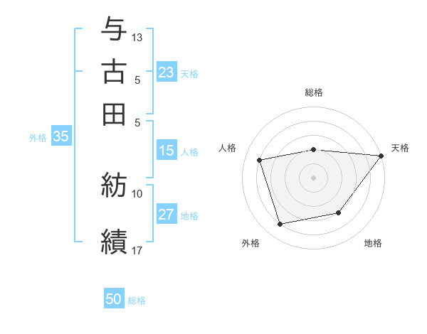 与古田 紡績さんを姓名の画数から五運を鑑定