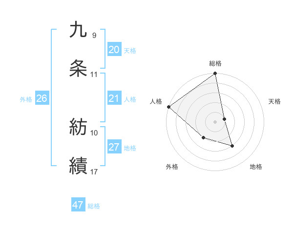 九条 紡績さんの総格は47画の5点!