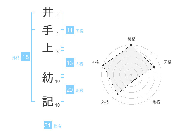 井手上 紡記さんを姓名の画数から五運を鑑定
