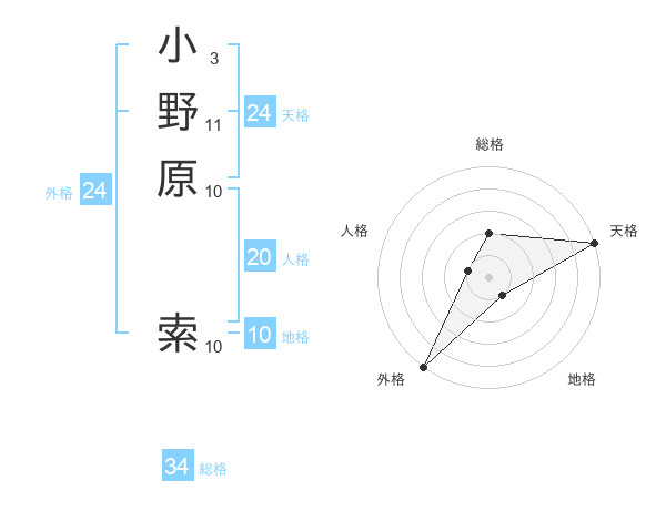 小野原 索さんの天格は24画の5点!