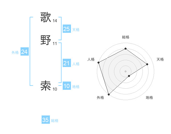 歌野 索さんの総格は35画の4点!